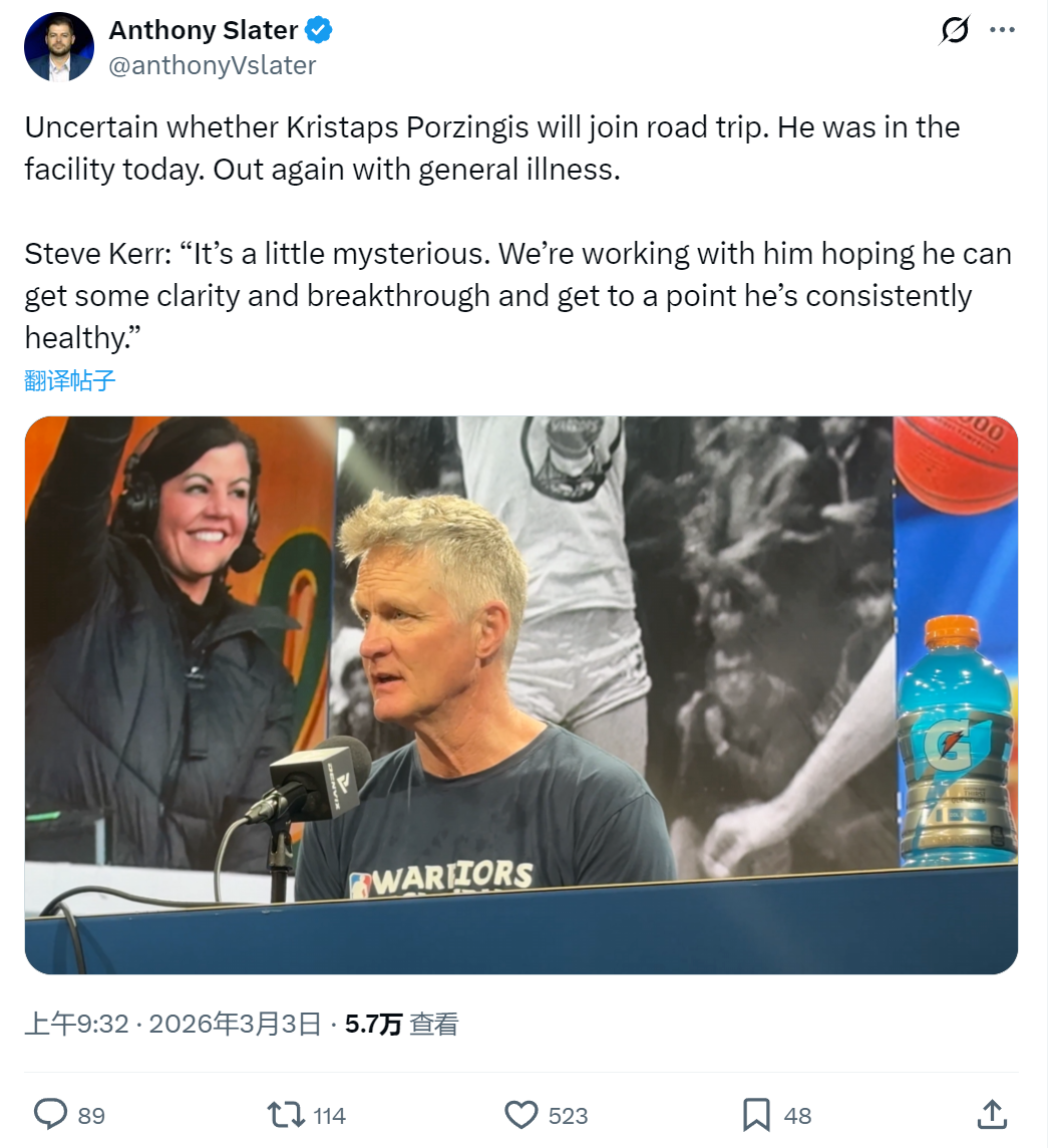 那么波神的病因是什么?没人知道。勇士主帅科尔今天赛前透露:“波尔津吉斯的病情有些神秘,队医试图弄清楚他的病情究竟如何!”