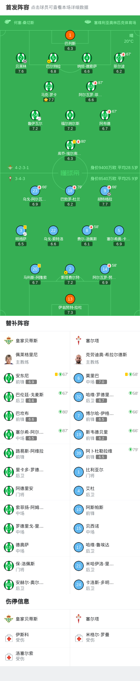 第4分钟,胡特格拉远射,巴列斯黄油手皮球进网,贝蒂斯0-1塞尔塔